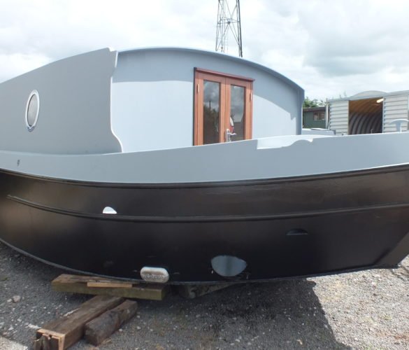 A 60′ x 12’6″ Sailaway slot is now available in our manufacturing line, with a Cruiser Stern and Tiller Steering. The exterior is coated with a basecoat of primer and the vessel is powered by a Canaline 52hp diesel engine.