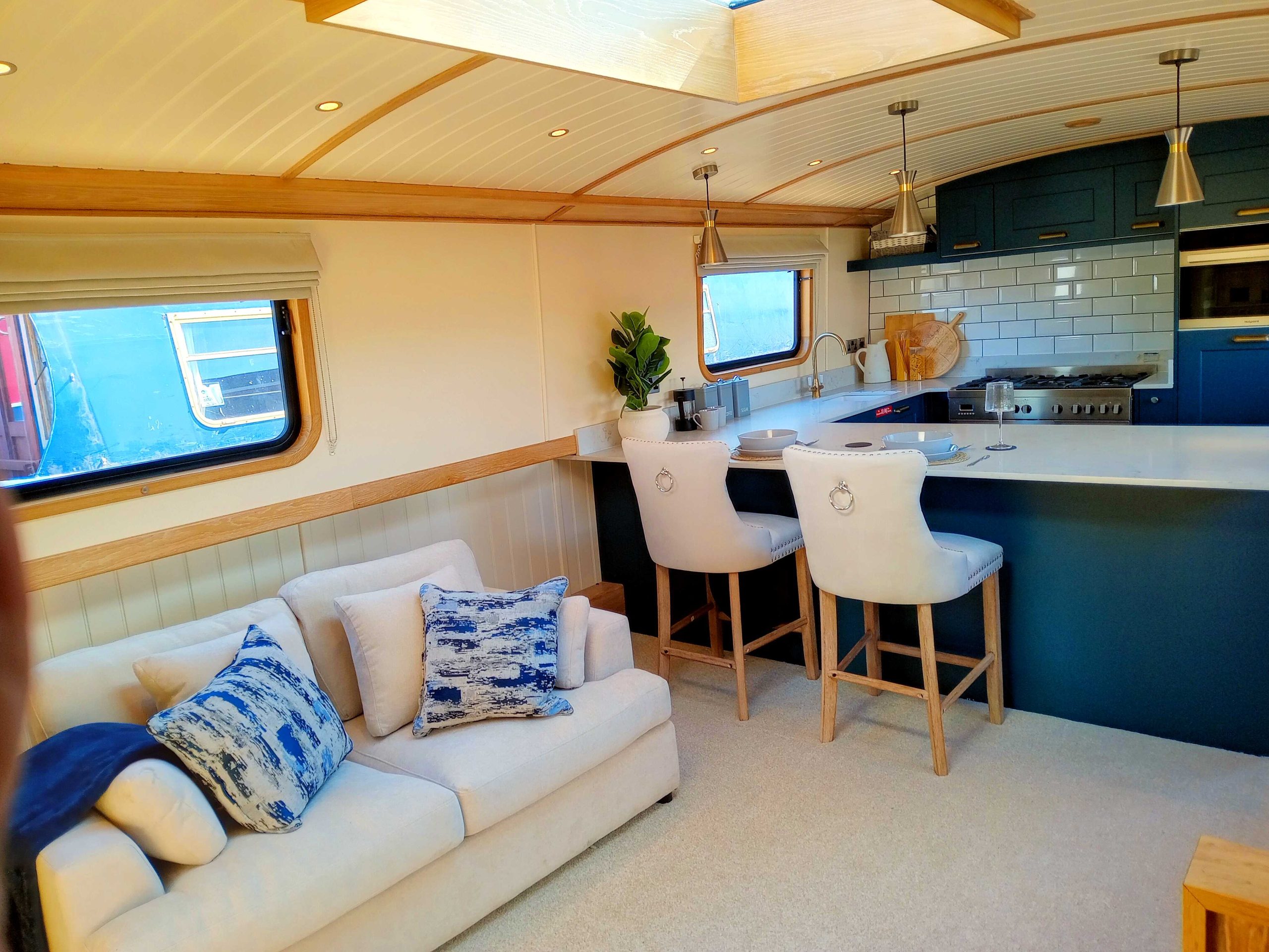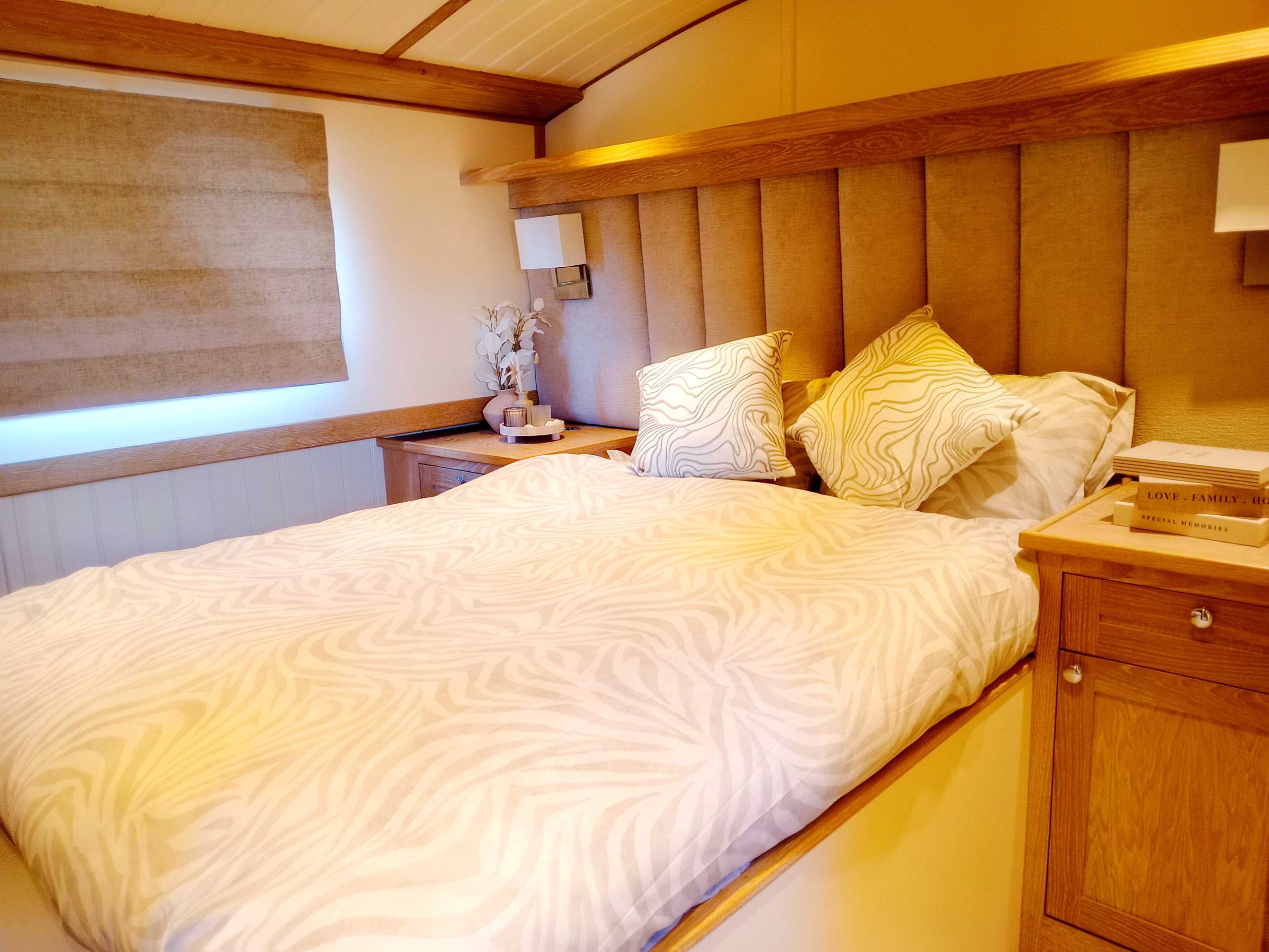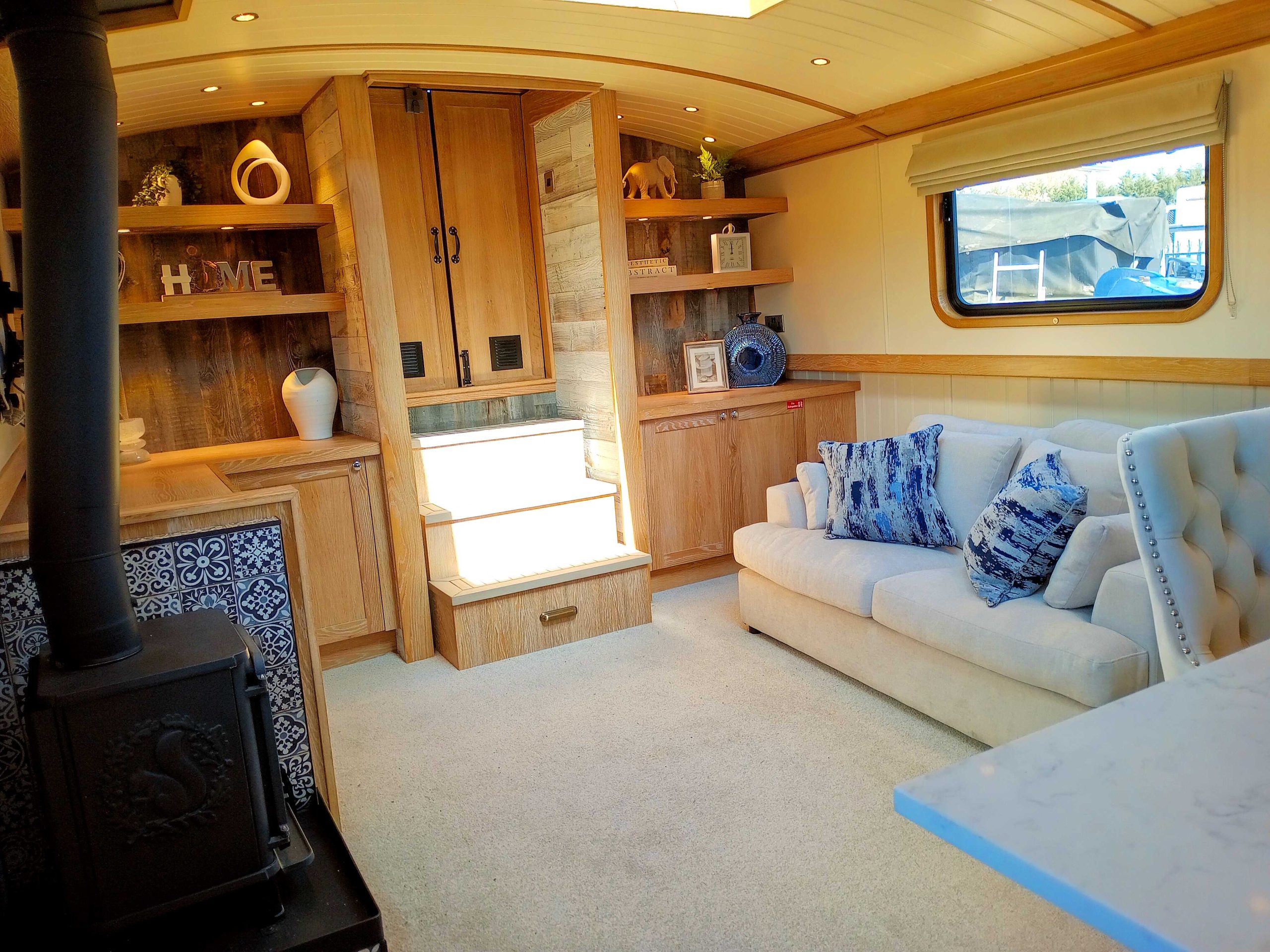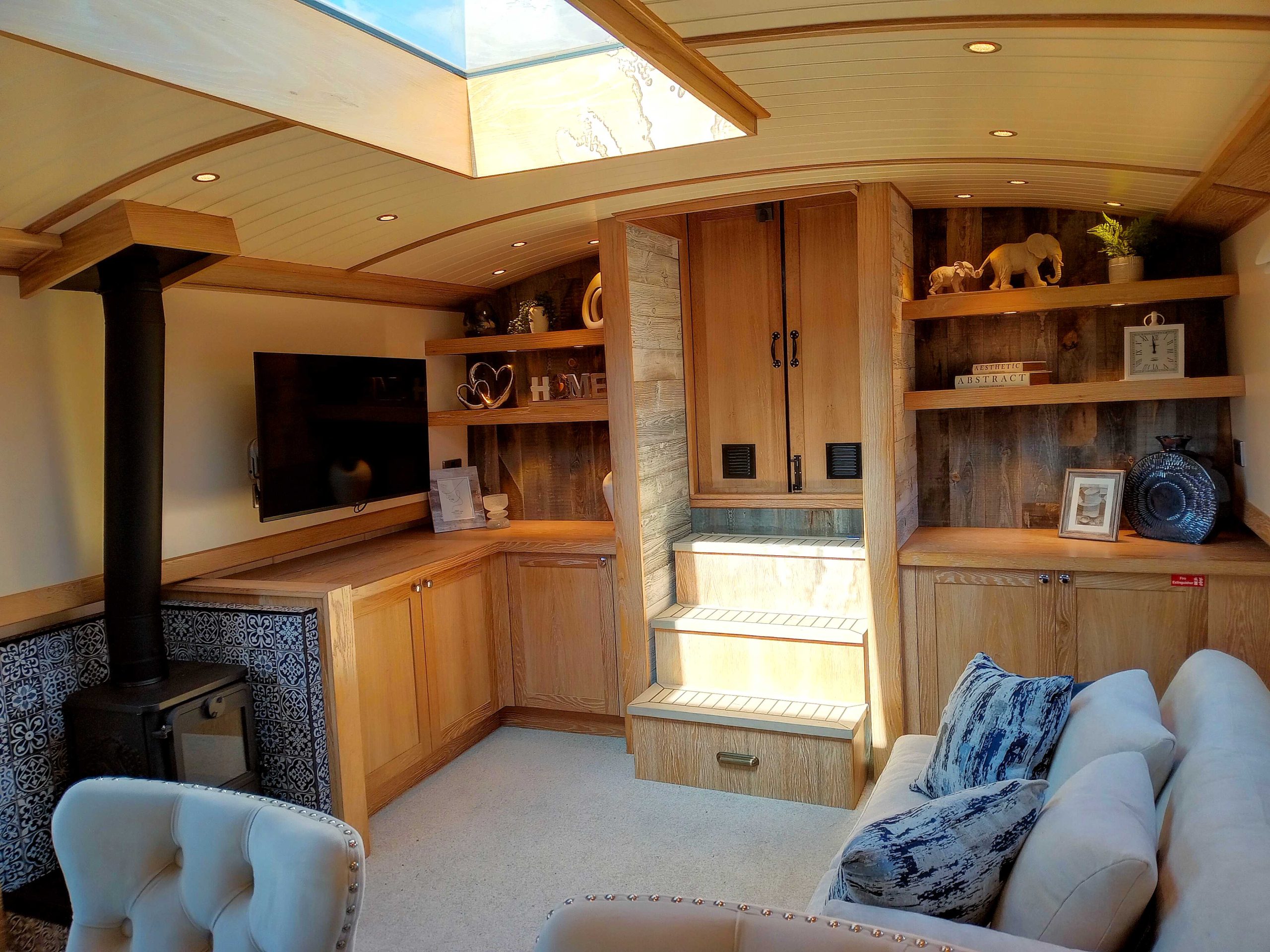 Cabin Lining: White painted ply and T&G effect